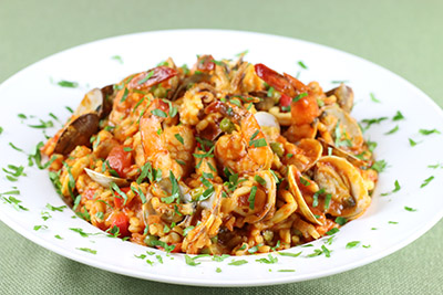Finikas Paella with Seafood and Chicken