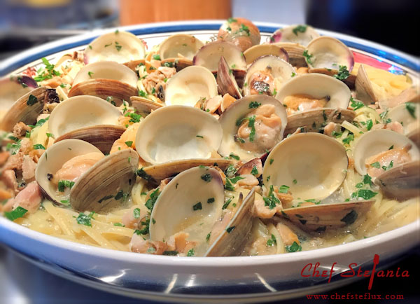 Linguine with fresh clams is a very special treat. This particular dish was prepared on the tip of Long Island using wonderful clams caught the day of preparation. They made a “Yummy” meal.